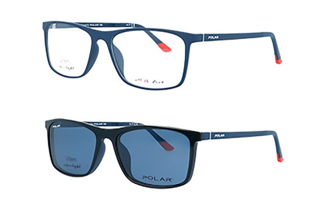 Montura de la marca Polar con clip solar, fabricada en ultem, lo que la confiere liereza. Código 5713